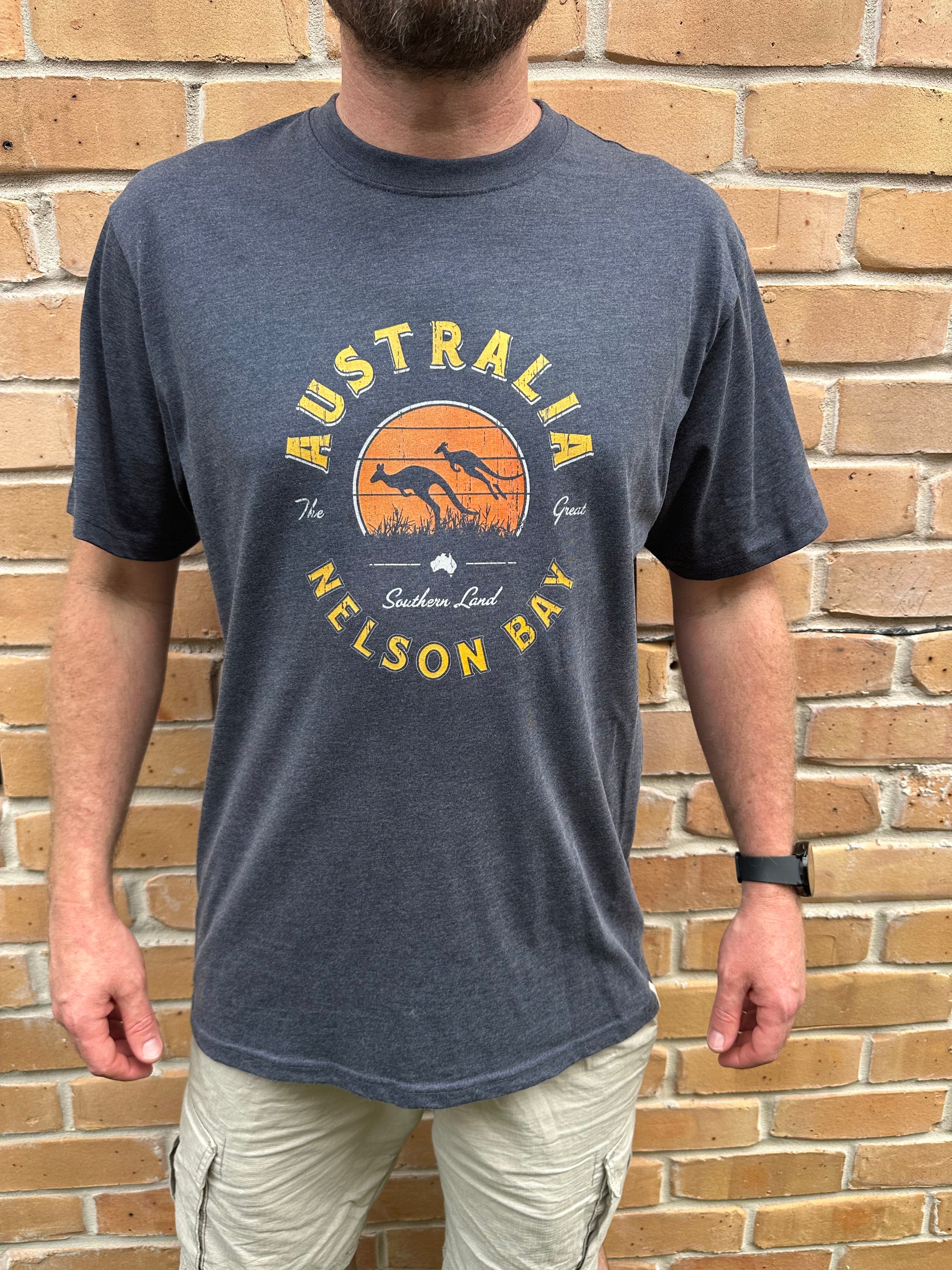 Celebrate Australian spirit with this comfortable men's t-shirt featuring a bold Roo design. The denim marle fabric offers a relaxed, versatile look that works perfectly for casual outings or everyday wear. Quality construction ensures durability through countless washes, while the classic crew neck and short sleeves provide timeless appeal. Whether you're heading out with mates or keeping it low-key, this tee delivers style and comfort in one package.